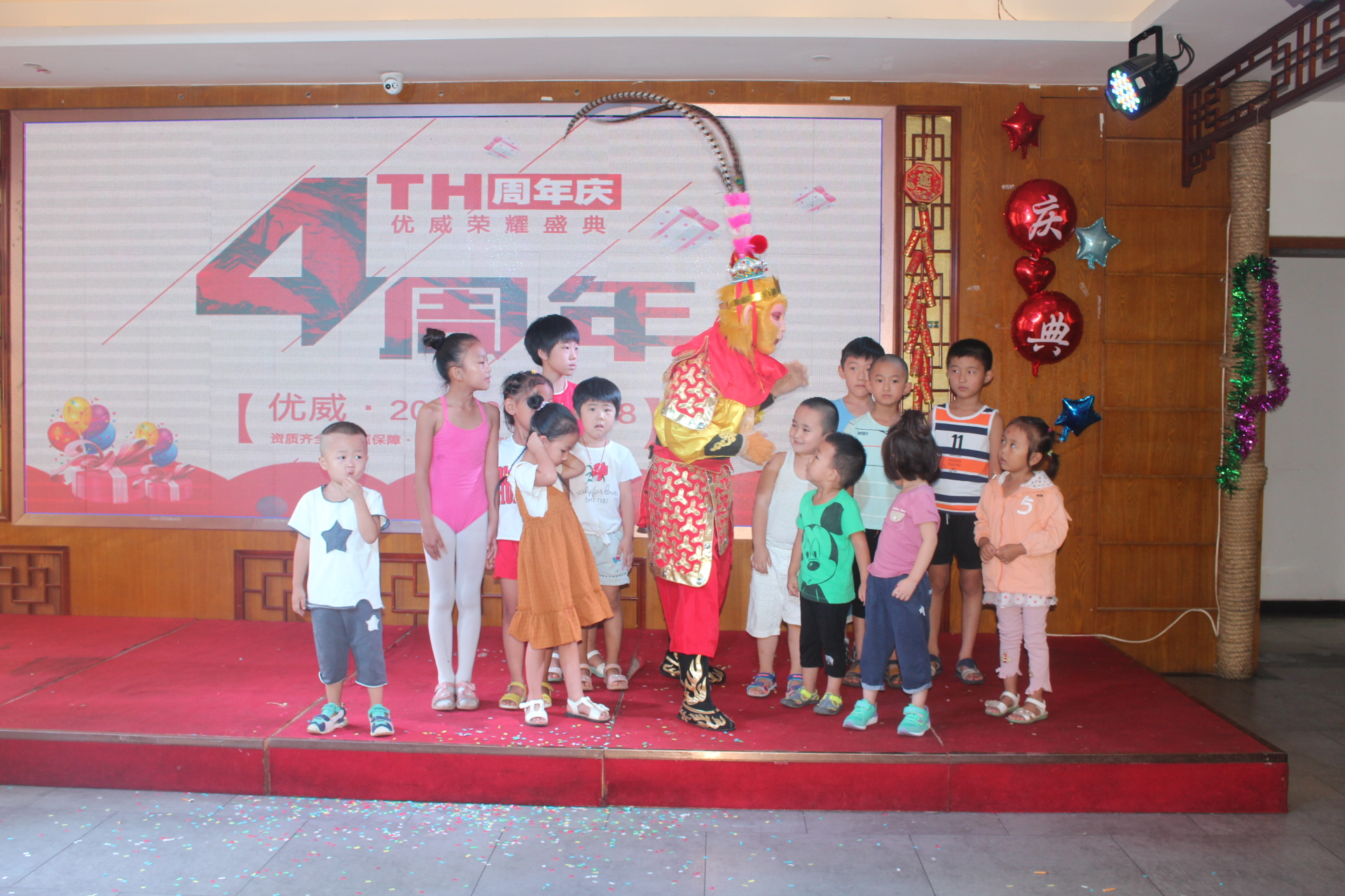 美猴王登臺與眾多優威公司的小猴子合影